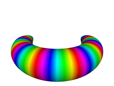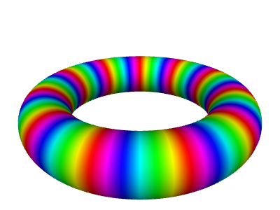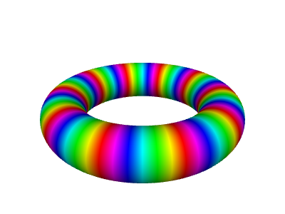 où \(\omega = (E_{n+1}-E{n})/\hbar\). On en déduit que la densité de probabilité \(|\psi(r,\theta,\varphi,t)|^2 = |\psi(r,\theta,\varphi-\omega t)|^2\) tourne à la fréquence \(\omega/(2\pi)\), comme observé sur la simulation.
